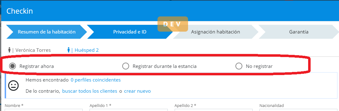 Si le client secondaire n’est pas présent au moment du check-in, l’équipe de réception peut choisir d’enregistrer le client plus tard, pendant le séjour. Cette option offre plus de flexibilité et permet d’enregistrer les clients arrivant plus tard.