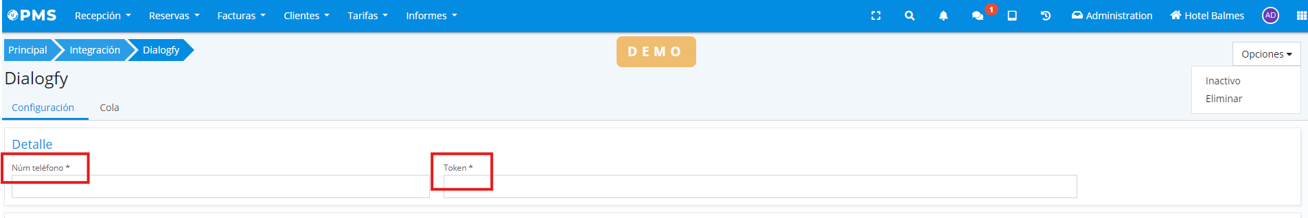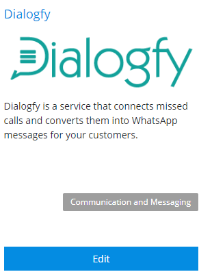 Pour activer le service, il faut d’abord configurer l’intégration avec le numéro de téléphone et le token fournis par Dialogfy une fois le service souscrit.