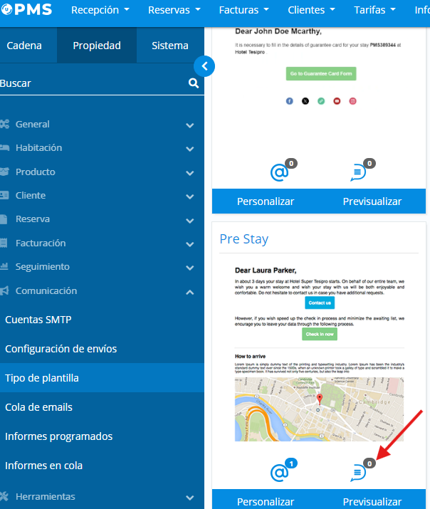 Par exemple, on active le pre-stay avec un automatisme 2 jours avant la date d’arrivée
