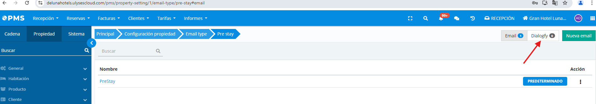 Une fois configuré, on verra dans les types de modèles liés à l’activation de la configuration de la propriété l’option d’envoi par mail ou par dialogfy.