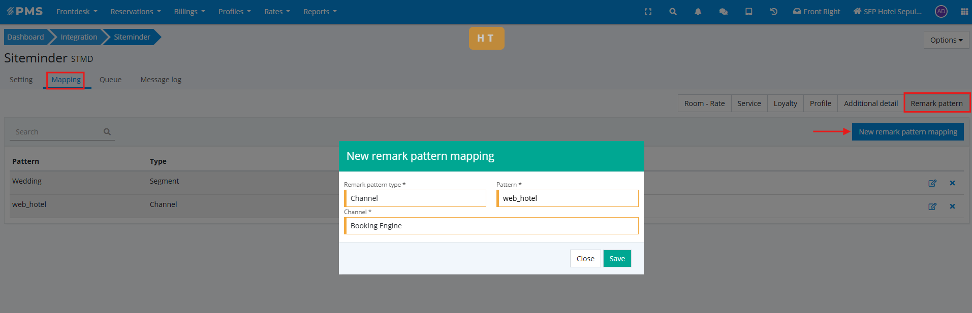 Par exemple, si l'on souhaite que chaque fois que le texte "web_hotel" arrive dans les commentaires, le canal du séjour soit mis à jour pour indiquer "Booking Engine", on le mappera de la manière suivante :