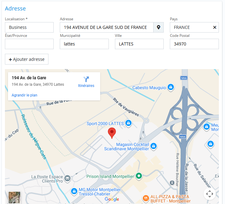 En règle générale, les adresses des succursales ne sont pas renseignées ici, car une section dédiée existe pour la gestion des entreprises liées.