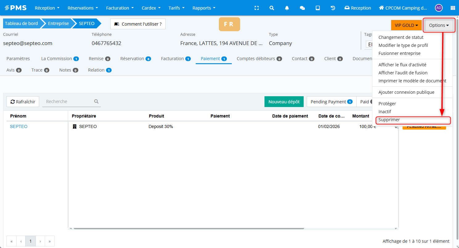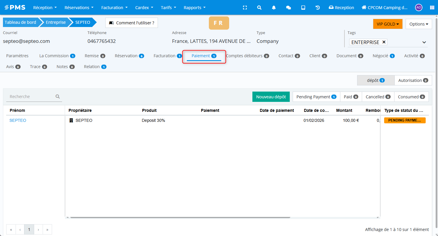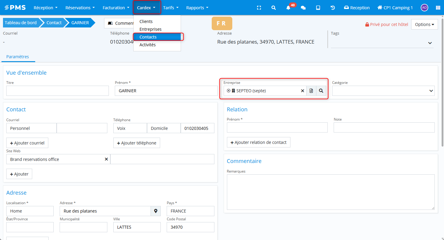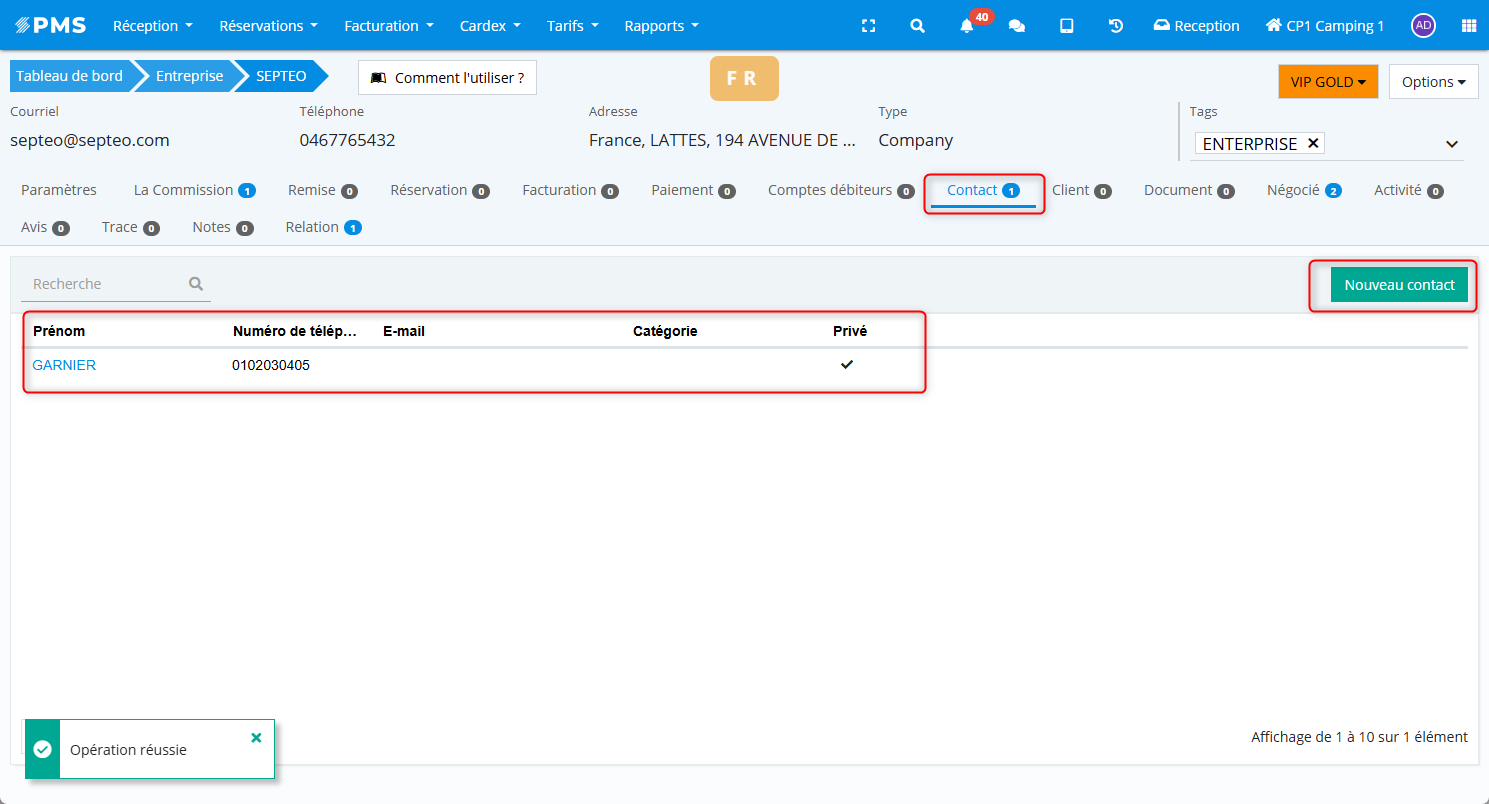 Par exemple, lors d’une réservation impliquant plusieurs entreprises, les clients sont automatiquement rattachés aux fiches entreprises concernées après le check-out.