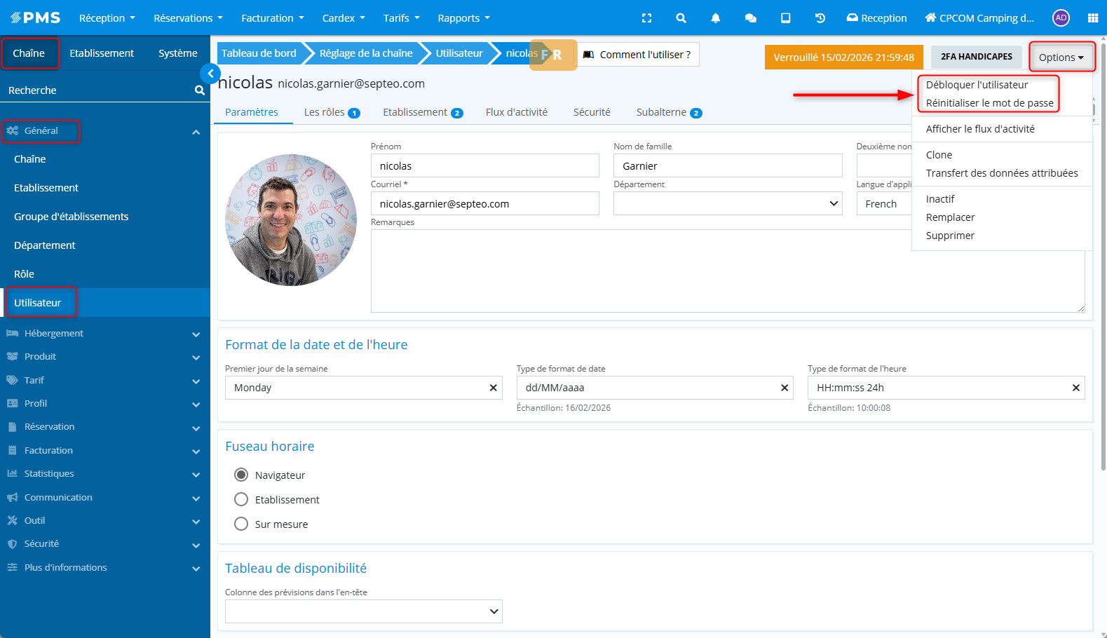 Ouvrir la fiche de l’utilisateur concerné
