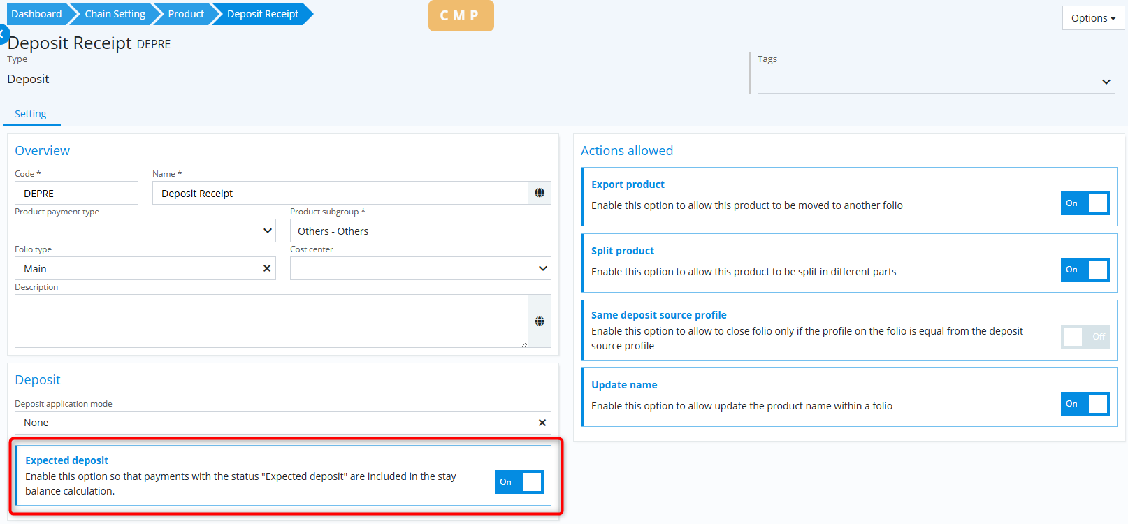 - Vous pouvez choisir, pour les dépôts enregistrés avec le statut « attendu », si son montant doit être inclus dans le calcul du solde de la réservation