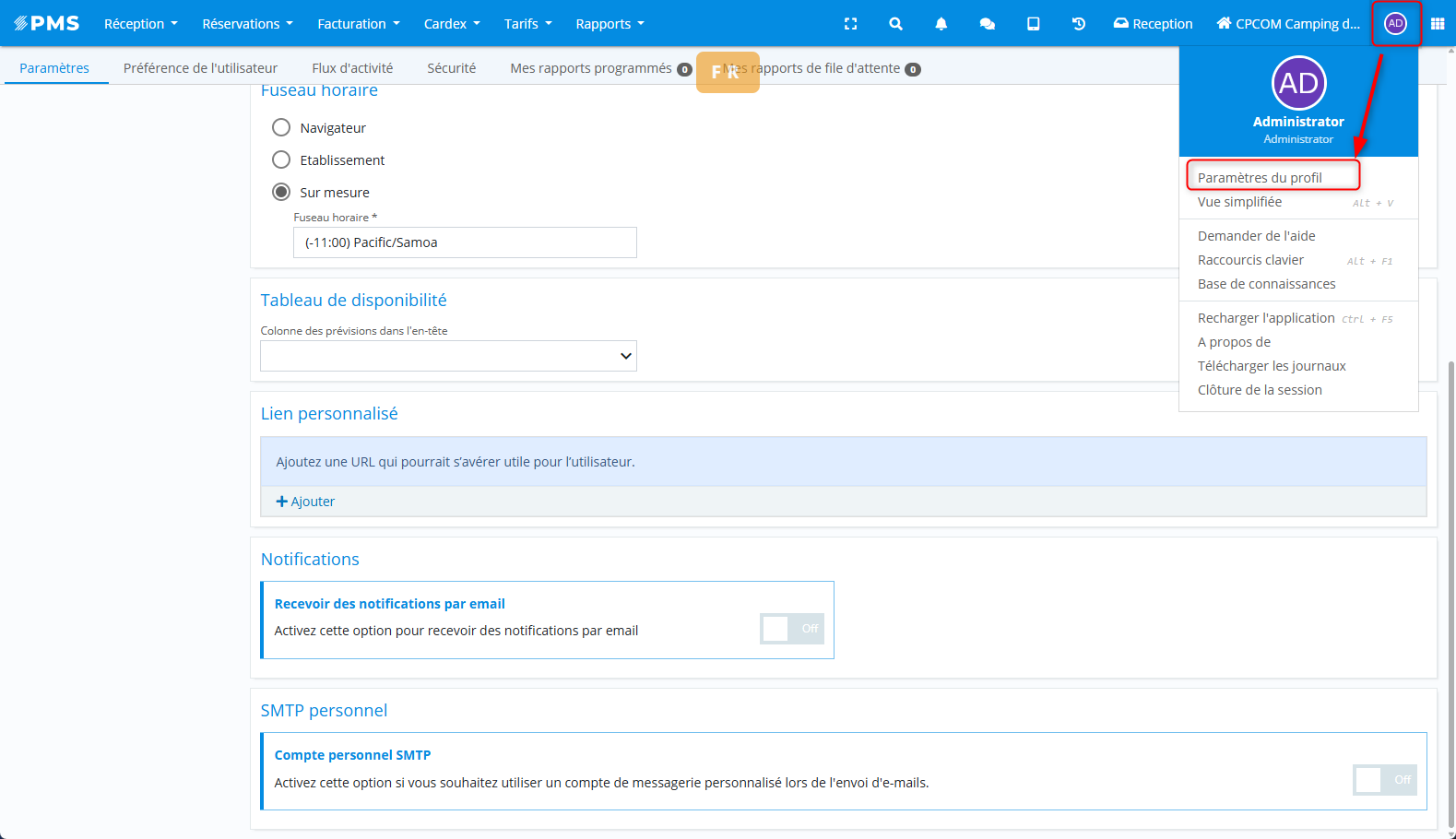 Profil utilisateur > Paramètres du profil > Liens personnalisés