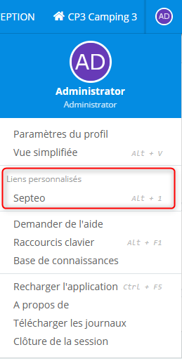 Une fois créés, les liens sont accessibles depuis le menu supérieur, quel que soit l’écran dans lequel l’utilisateur se trouve.