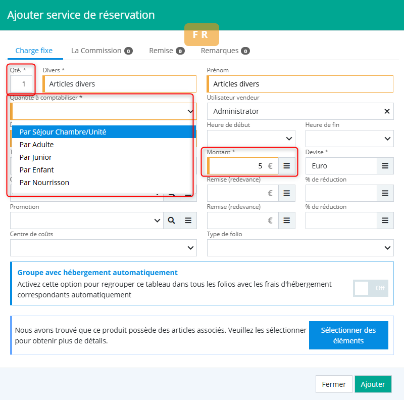 Les commissions sur les services peuvent être ajustées selon le contexte de réservation.