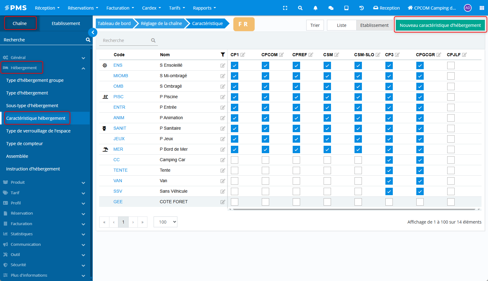 Configuration de l’établissement > Caractéristiques d’hébergement