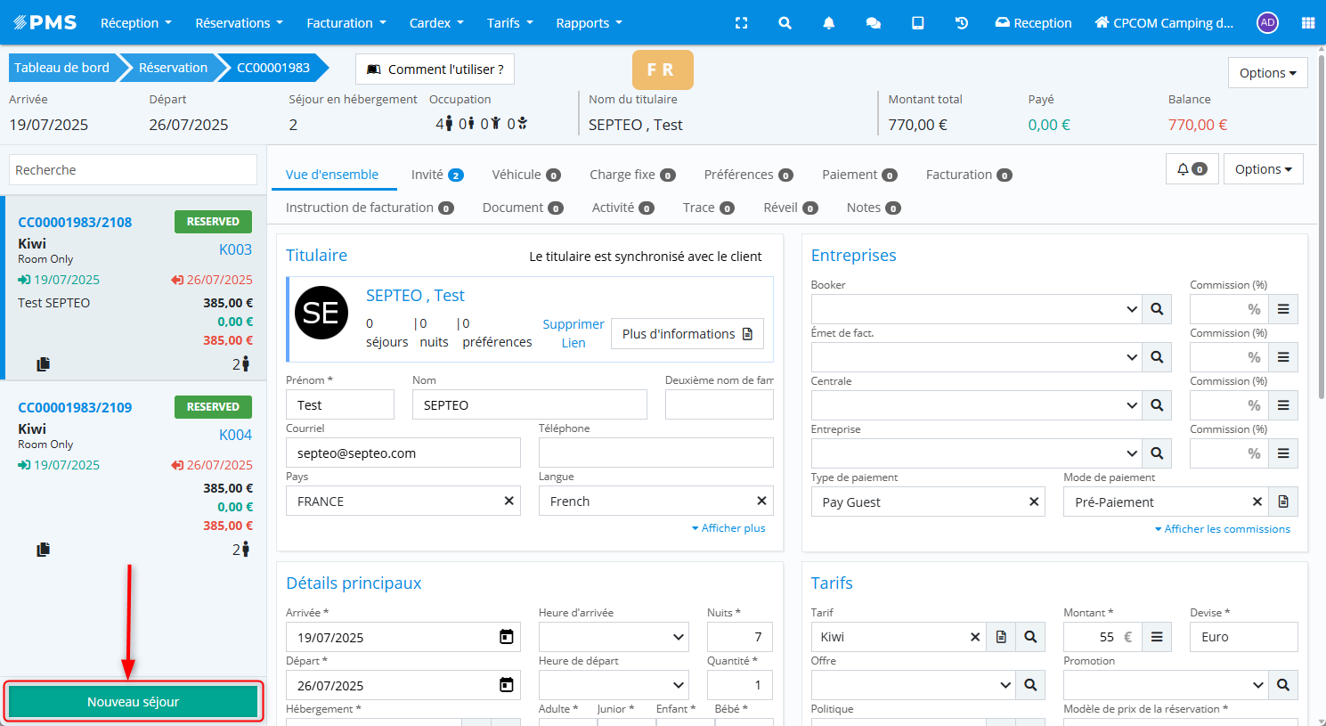 Chaque séjour peut être géré indépendamment (clients, services, paiements, facturation).