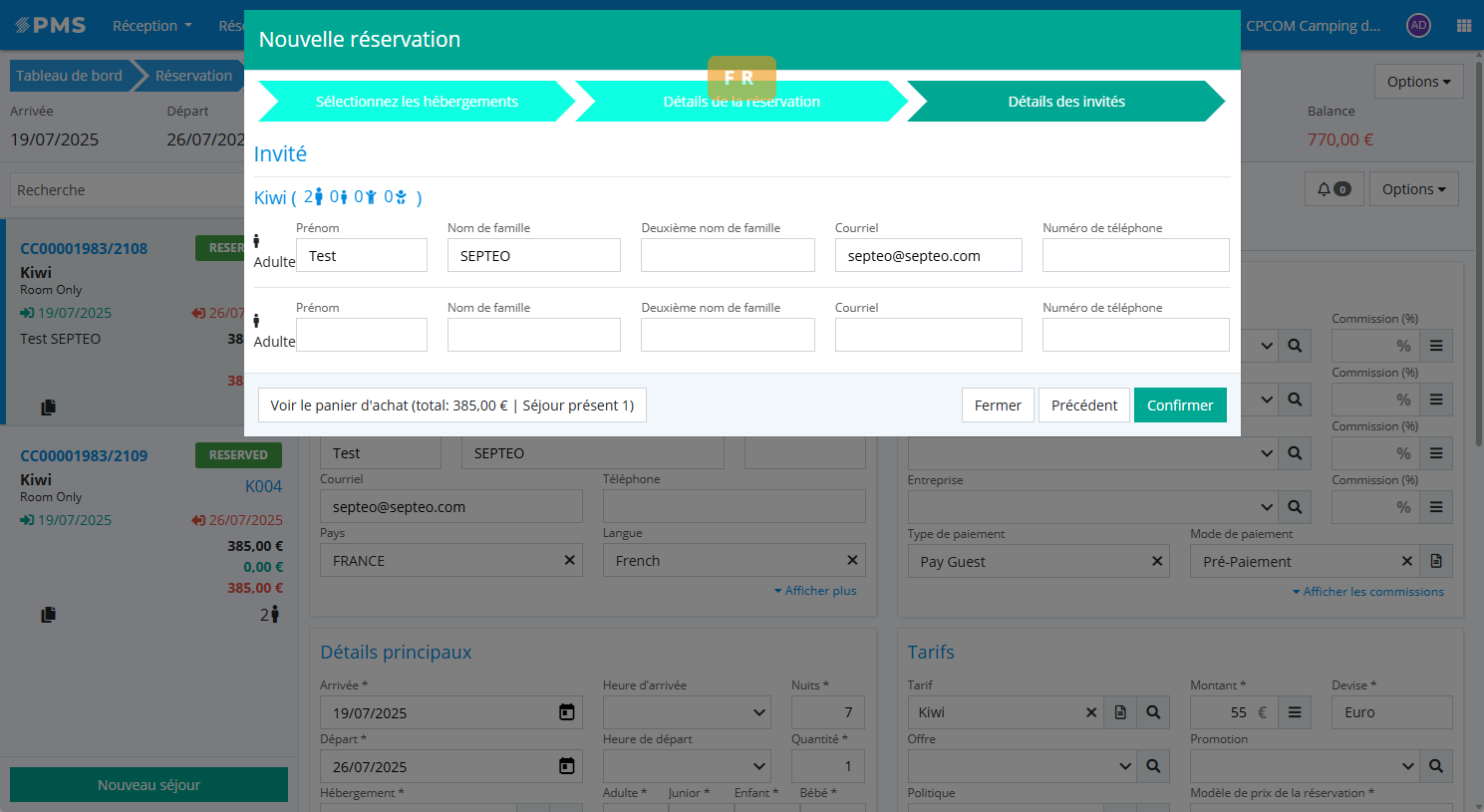 Vérifiez les informations du titulaire de la réservation, reprises automatiquement.