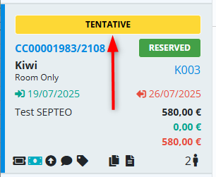 Après validation, la vignette du séjour affiche le type de réservation sélectionné en haut, ce qui facilite son identification visuelle dans les écrans de suivi.
