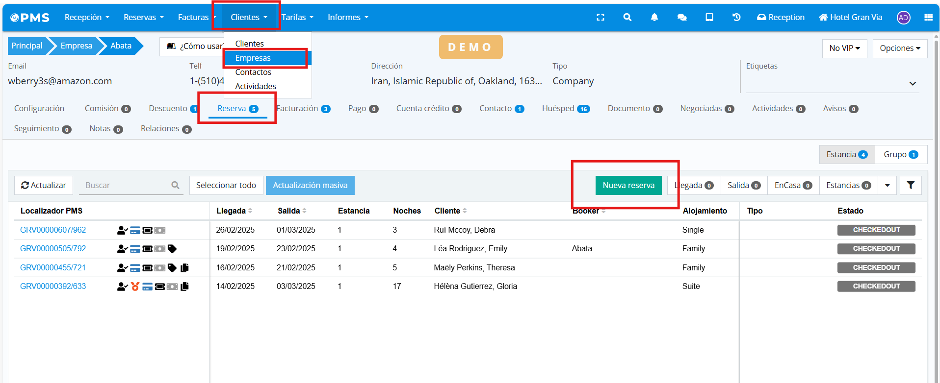 Pour cela, nous accéderons à Fiche entreprise > Réservation
