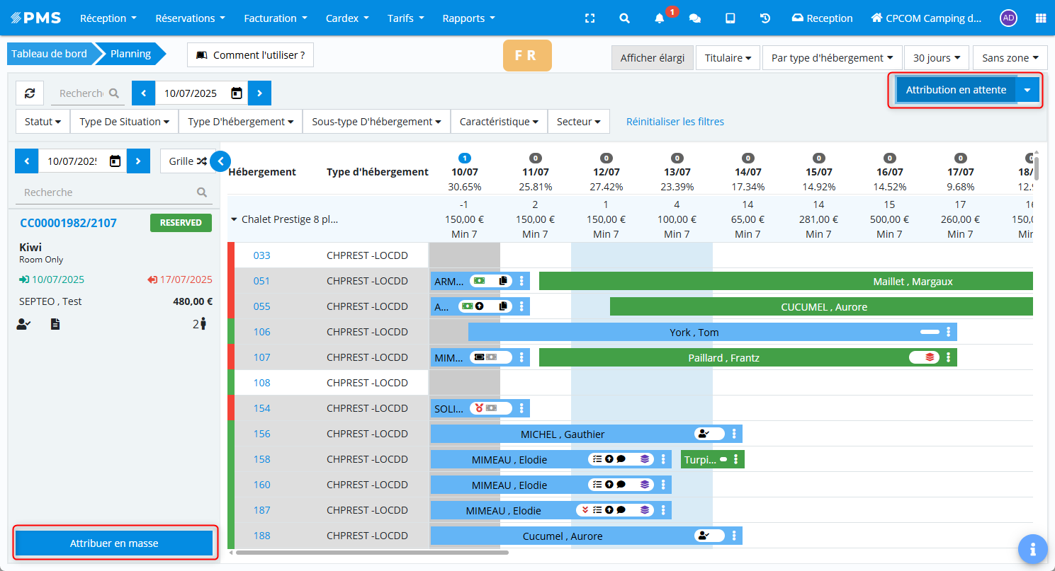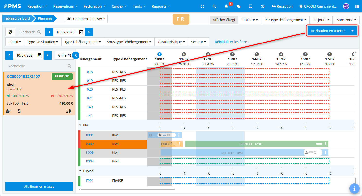 Utilisation du planning des réservations pour répartir efficacement les arrivées non attribuées.