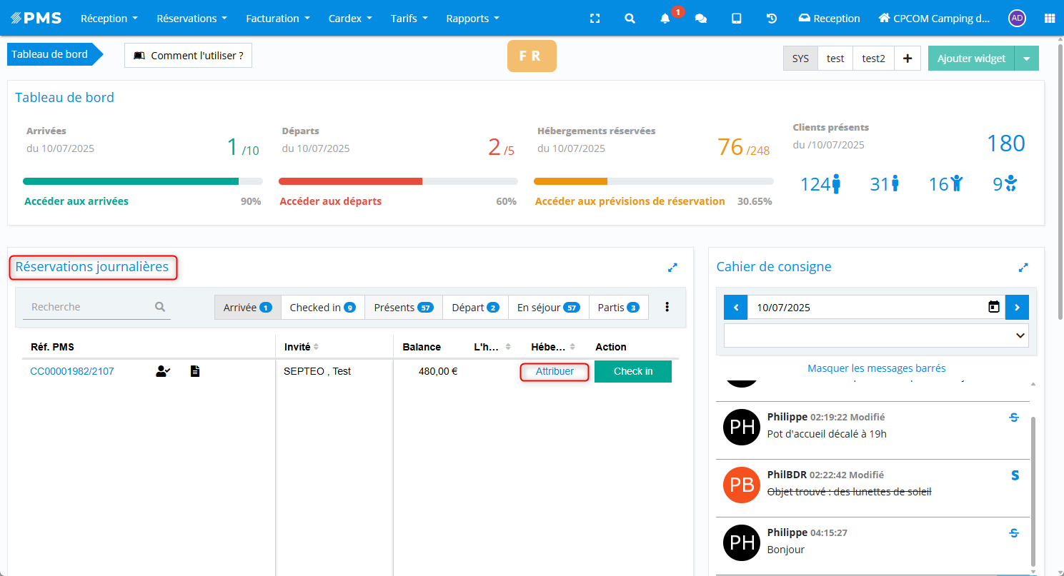 Préattribution automatique des hébergements avant l’arrivée des clients afin d’anticiper l’organisation.
