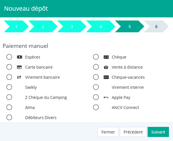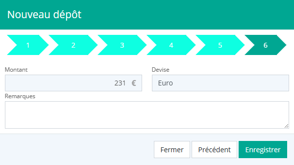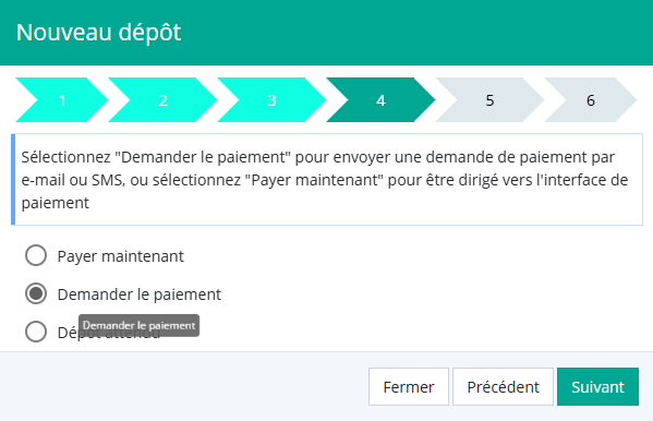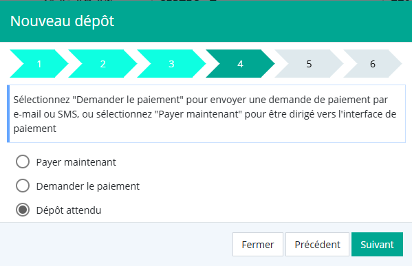 Lors de la création, il est nécessaire de choisir la manière dont le dépôt sera encaissé :