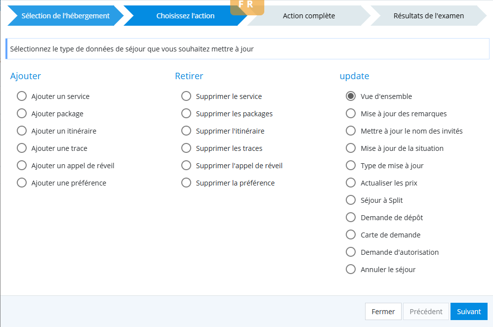 sélectionnez tous les séjours ou uniquement ceux à modifier