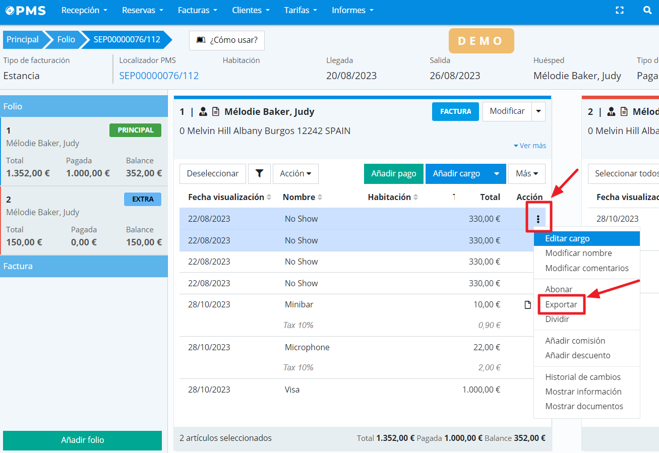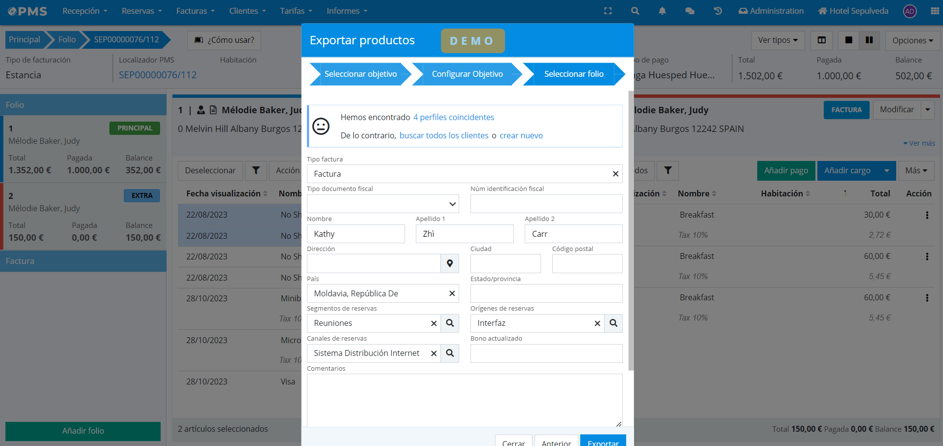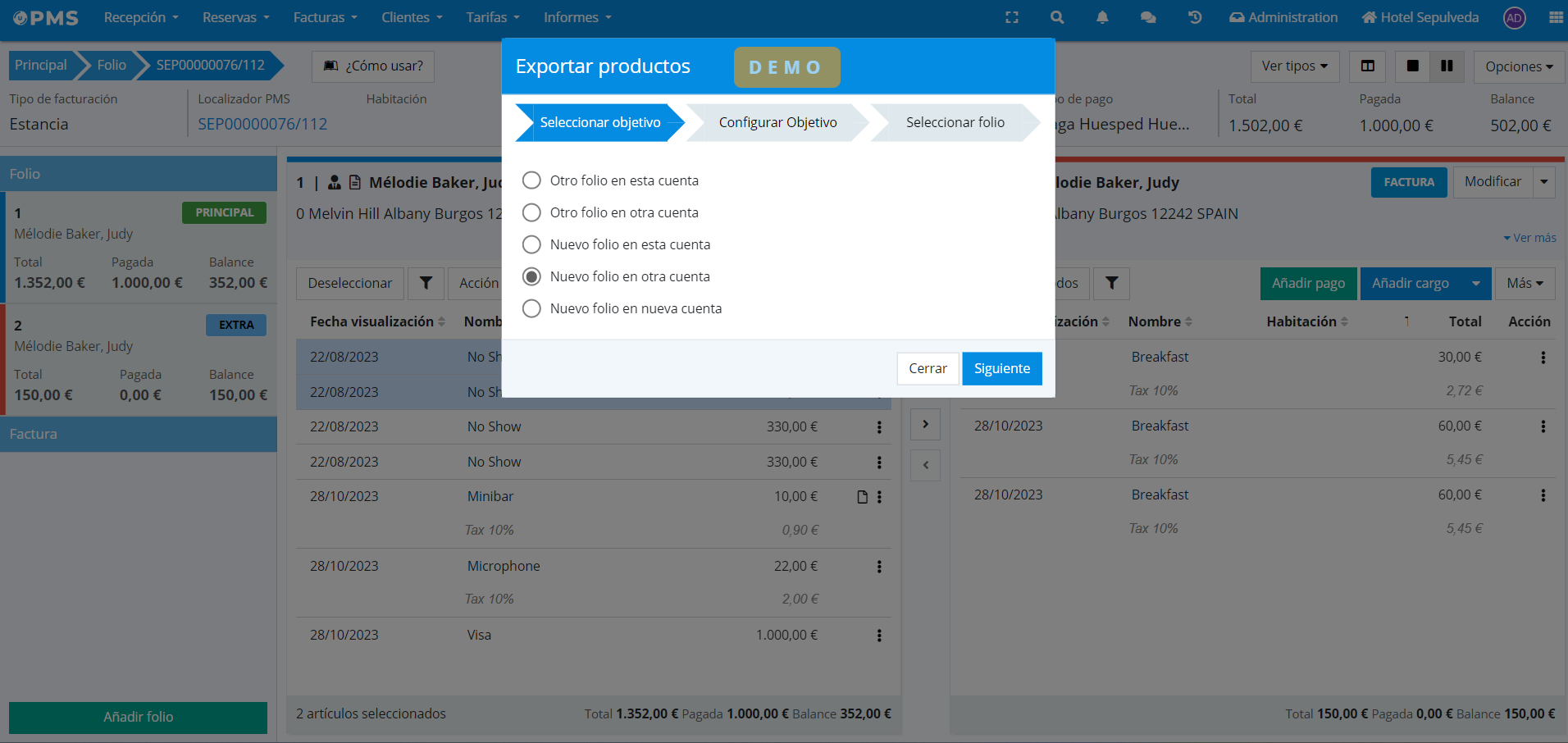 - Cette option est utile si nous souhaitons transférer les charges vers un folio PM, en demandant les informations nécessaires à la création d'un nouveau folio dans un compte différent.