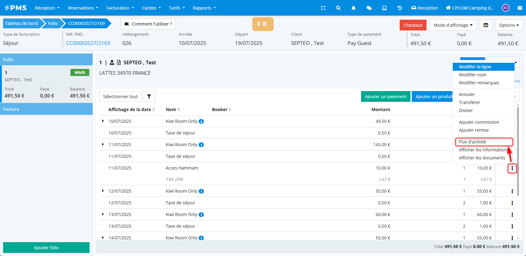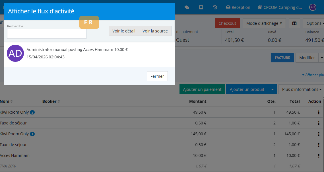 - Voir détail (View detail) : affiche les informations complètes de chaque action