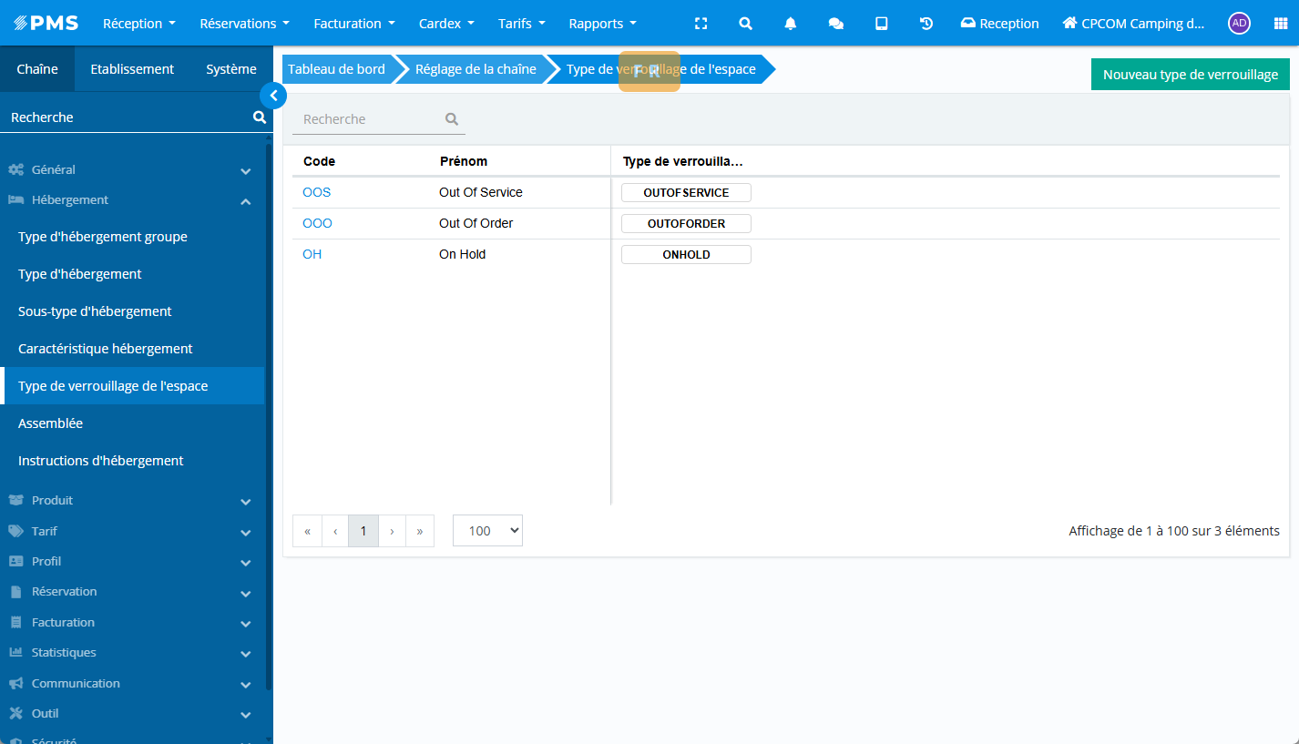 Les types de verrouillages déterminent si un hébergement est retiré ou non de la disponibilité.