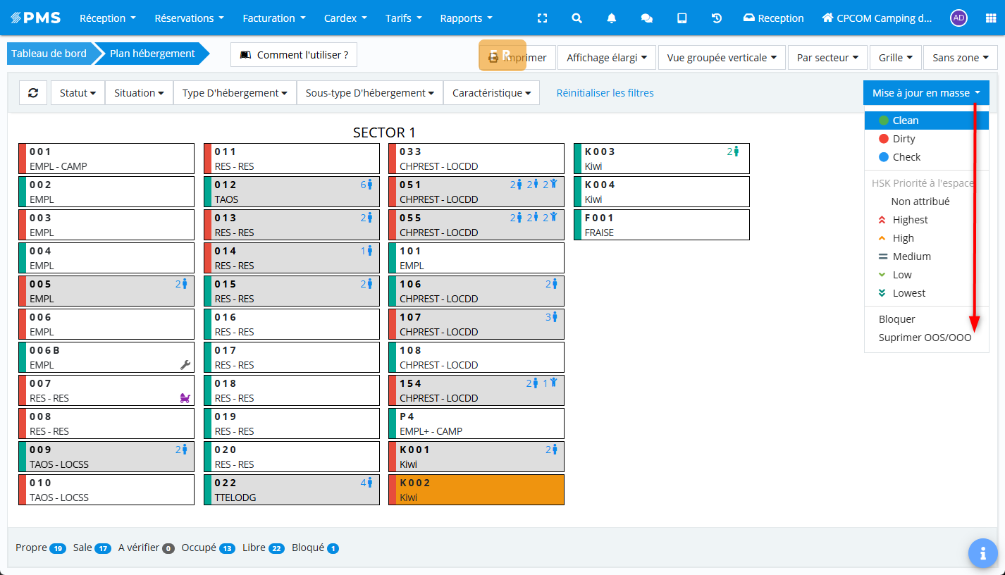 Cette fonctionnalité permet de gagner du temps lors de la réouverture de plusieurs hébergements.