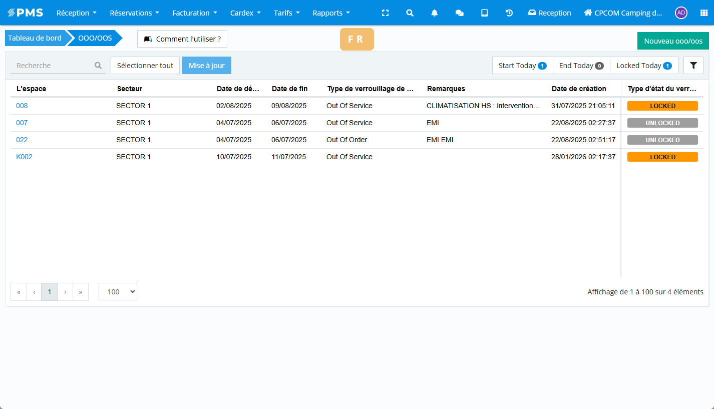 Dans la gestion quotidienne d’un établissement, certaines situations peuvent nécessiter le verrouillage des hébergements. Ces situations sont le plus souvent liées à des incidents techniques, des travaux ou des opérations de réhabilitation, mais peuvent également concerner des cas particuliers, comme l’attribution d’une gratuité.