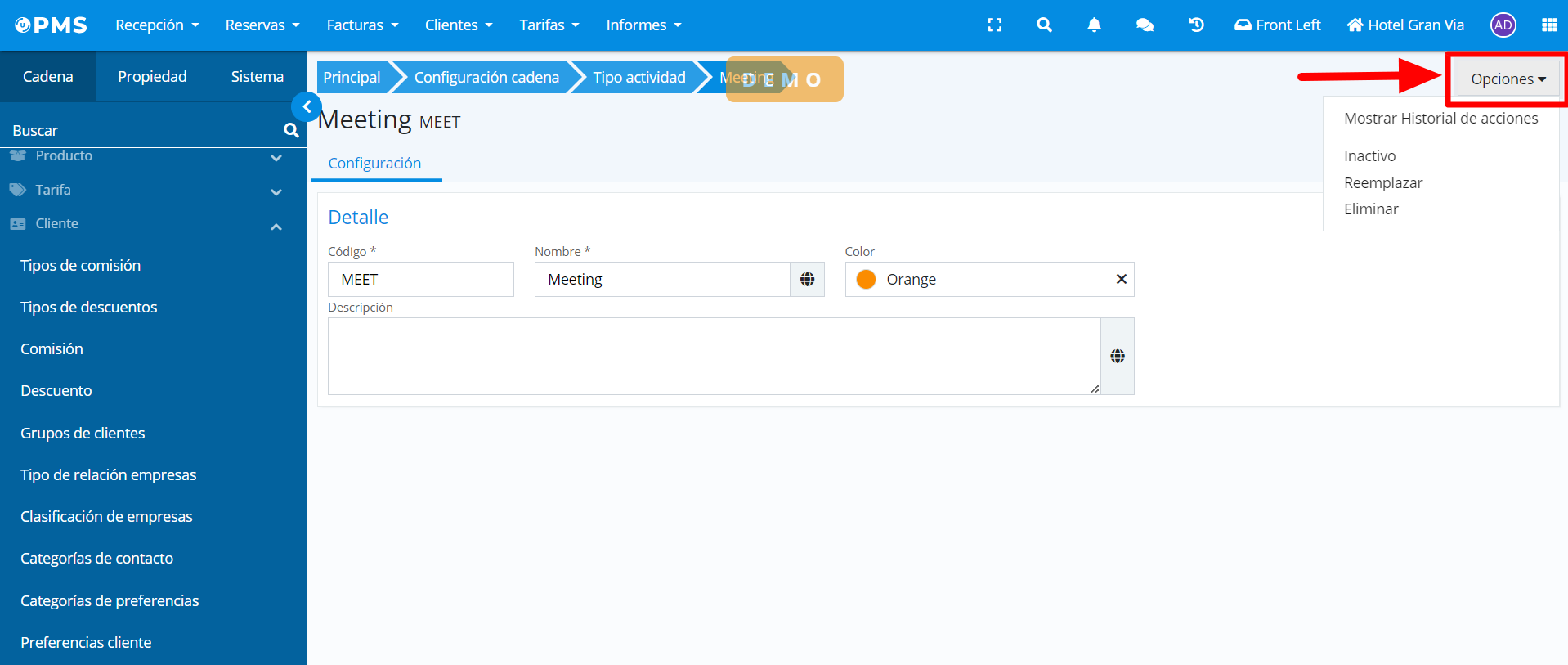 Pour cela, il suffit de sélectionner l'activité que nous souhaitons modifier et d'ouvrir le panneau des options.
