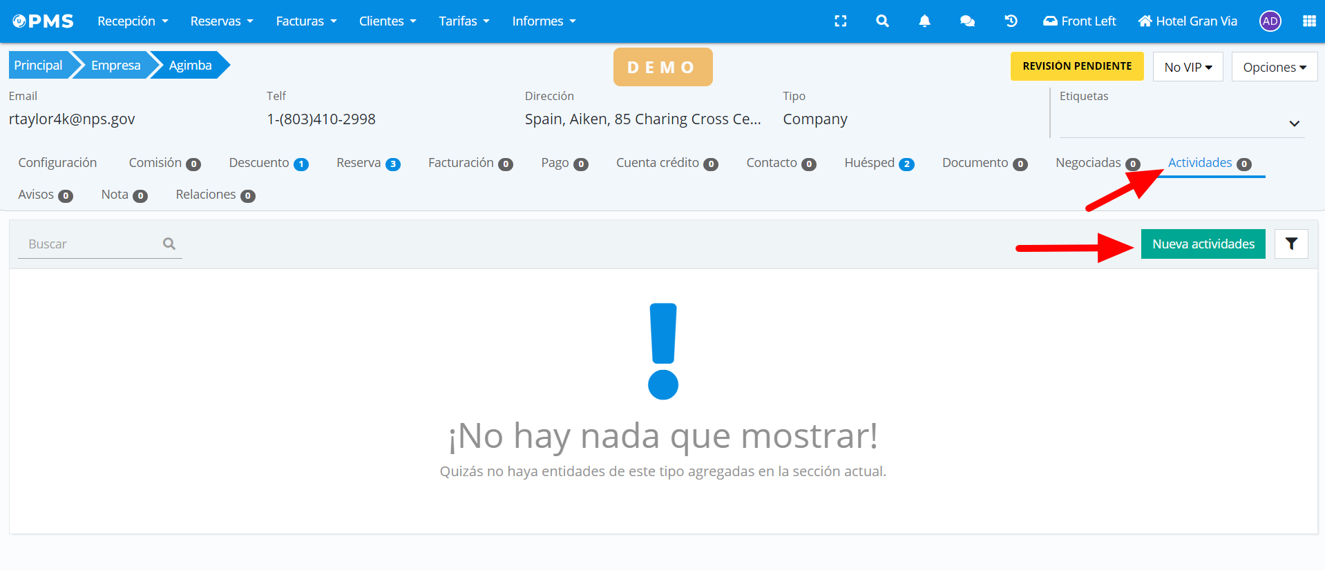 - Pour ce faire, allez dans la fiche détaillée correspondante et sélectionnez l'onglet "Activités". Ensuite, cherchez l'option "Nouvelle activité" et cliquez dessus.