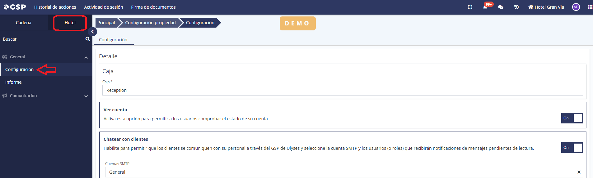 Une fois dans l'application GSP, nous devons accéder à la section de configuration :