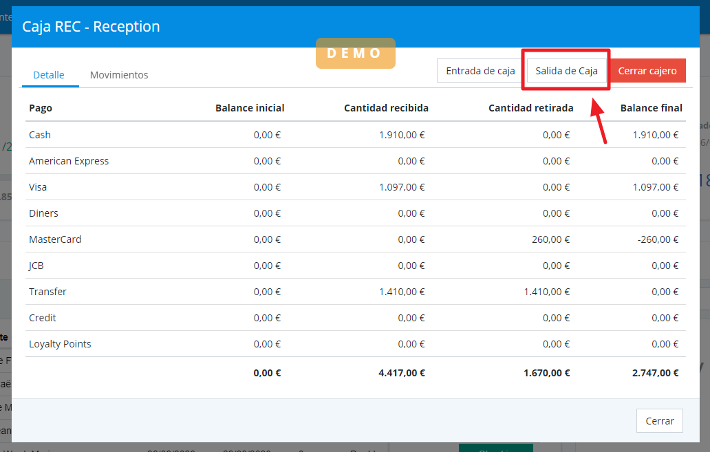 Pour effectuer une sortie de caisse, qui implique le retrait d'espèces, cette opération sera réalisée chaque fois qu'une personne ayant accès à la caisse remettra de l'argent liquide à un autre individu. Ce processus sera effectué à la fois pour effectuer des paiements internes entre membres de l'équipe et pour prêter de l'argent à un client.