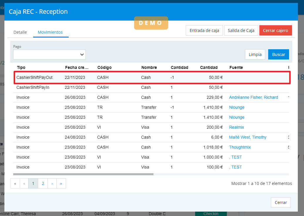 La traçabilité des mouvements d'entrées de caisse sera visible dans l'onglet des mouvements sous la dénomination spécifique "CashierShiftPayout".