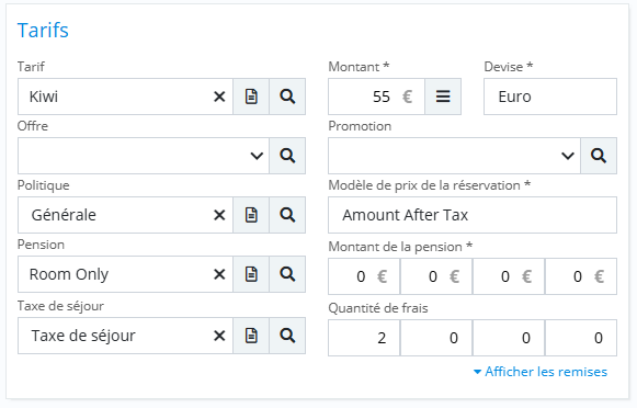 Tarif appliqué