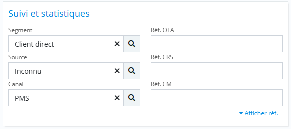 Références de réservation (OTA, CRS, Channel)