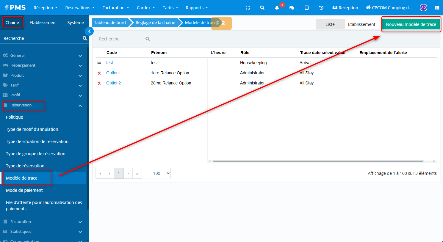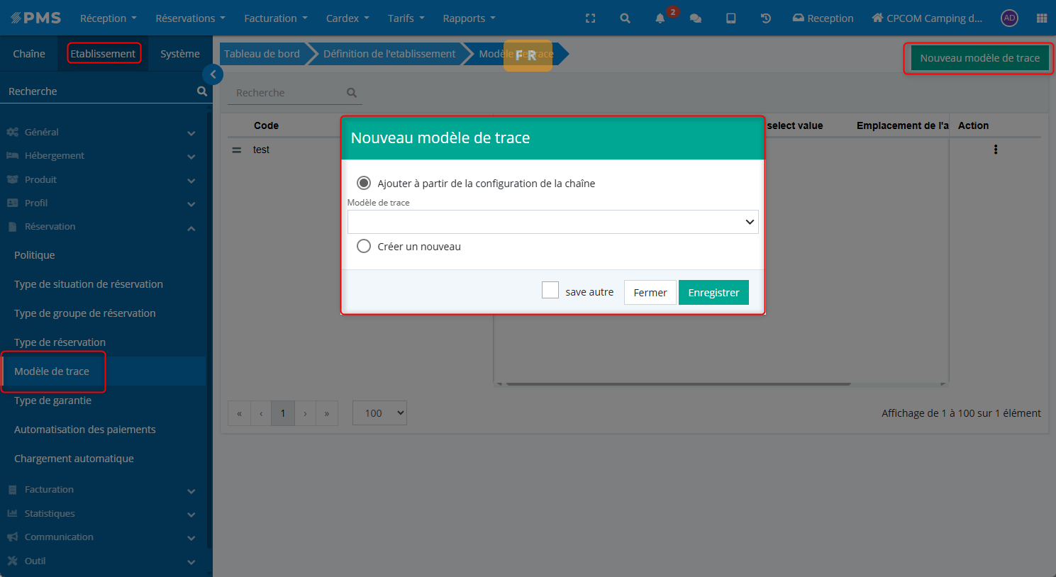 La création d’un modèle de trace au niveau de la chaîne permet de le rendre disponible pour plusieurs propriétés.