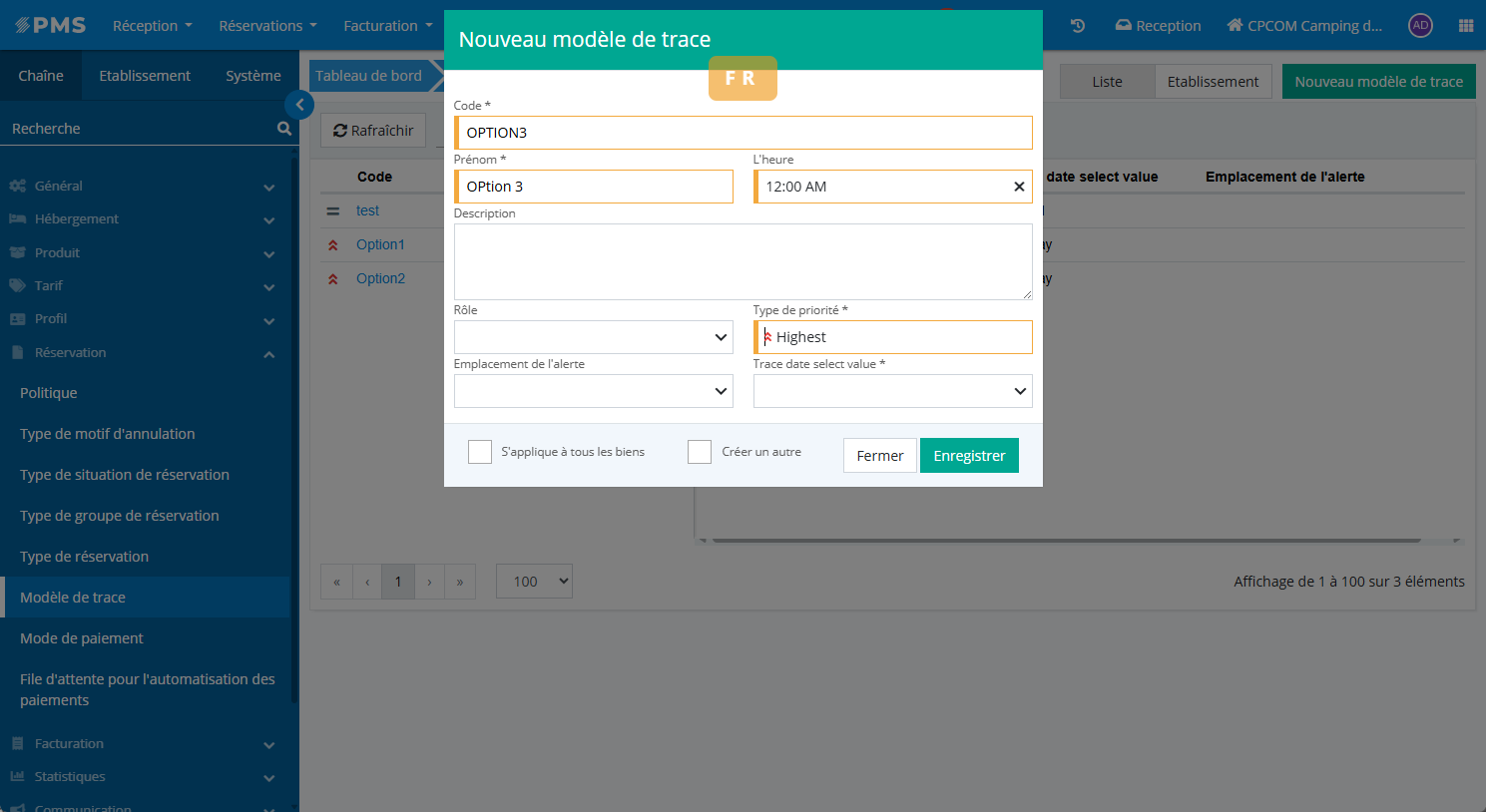 Ulyses Suite permet de configurer des modèles de trace afin de faciliter et standardiser la création d’avis et de notifications dans les réservations.