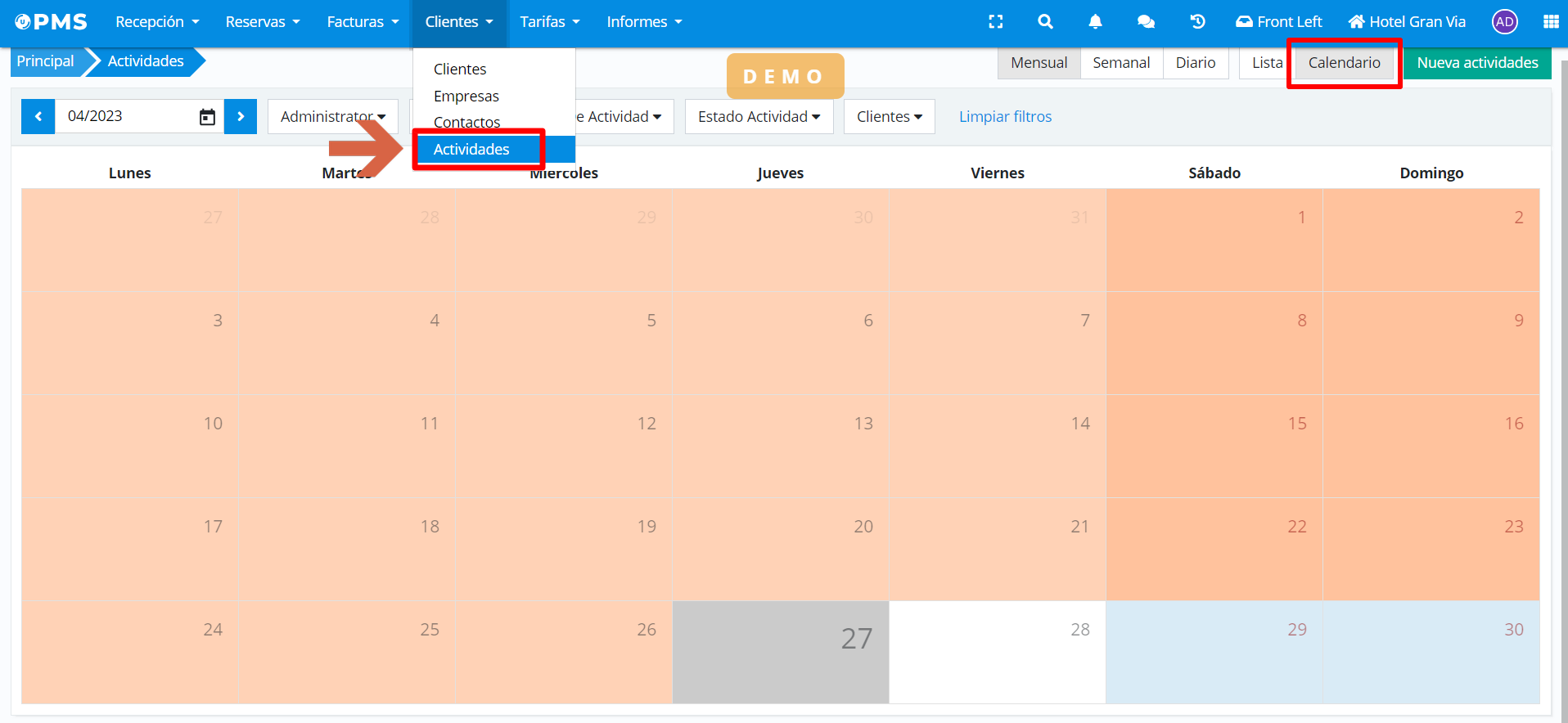 - Rendez-vous dans le menu supérieur et sélectionnez Clients > Activités