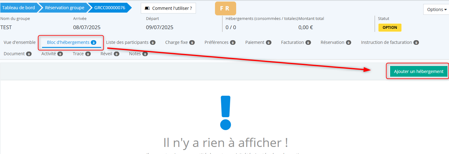 Lors de la création d’un groupe, aucune typologie d’hébergement n’est définie par défaut.