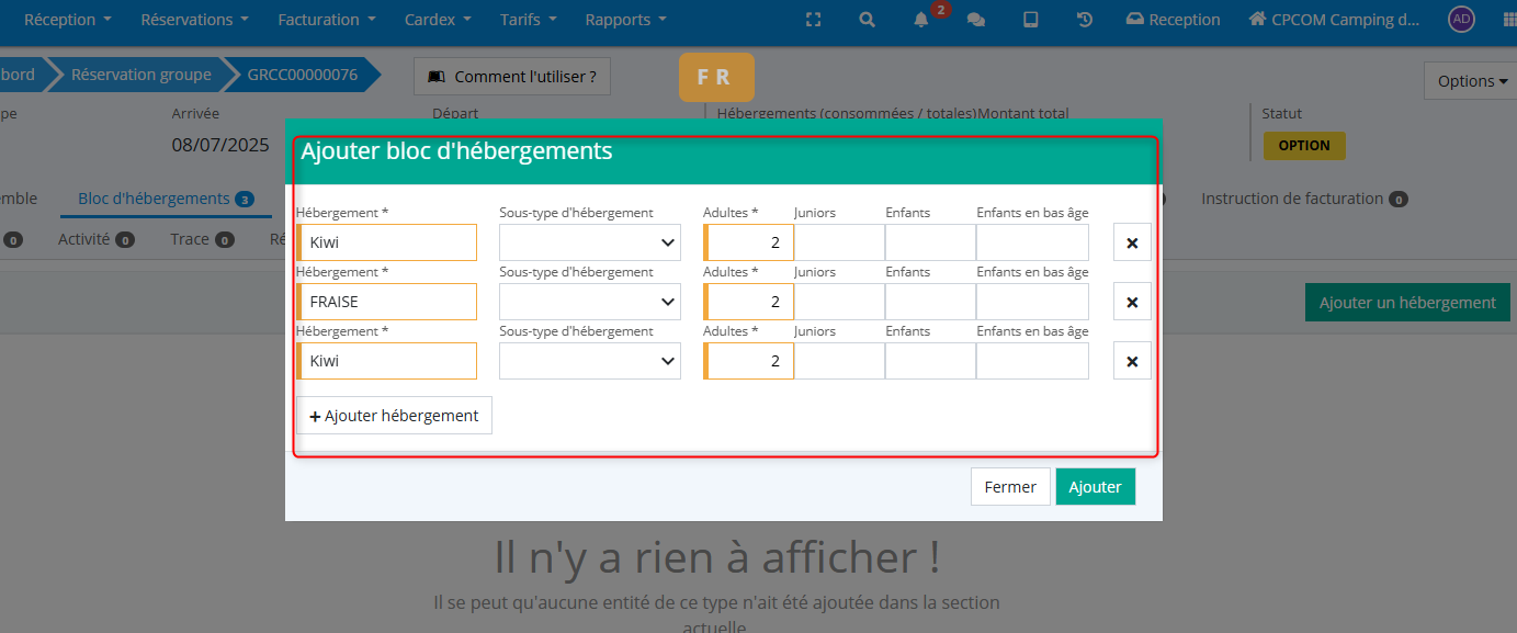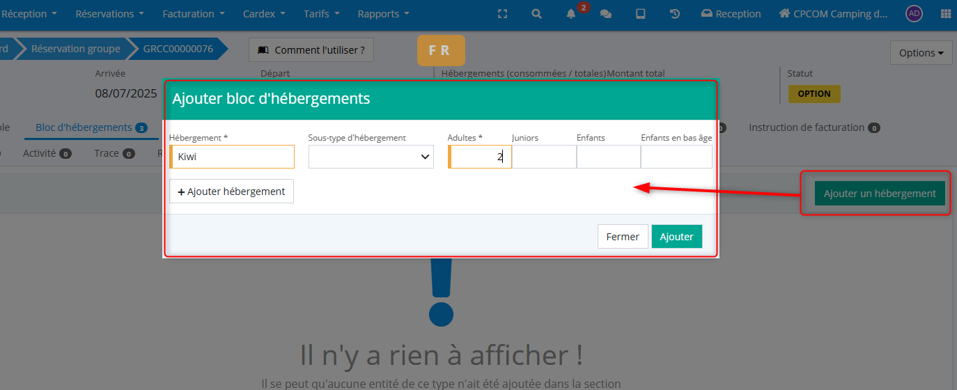 La première étape consiste donc à ajouter les hébergements proposés au client.