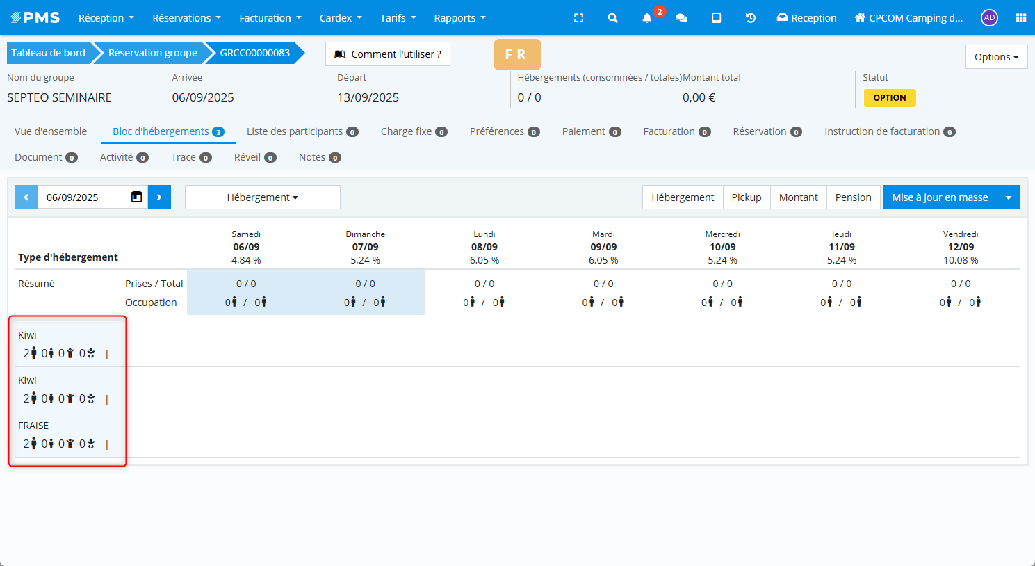 Le blocage d’un groupe correspond au nombre d’unités bloquées par jour, pour chaque typologie et sous-typologie d’hébergement négociée avec l’agence ou l’entreprise.