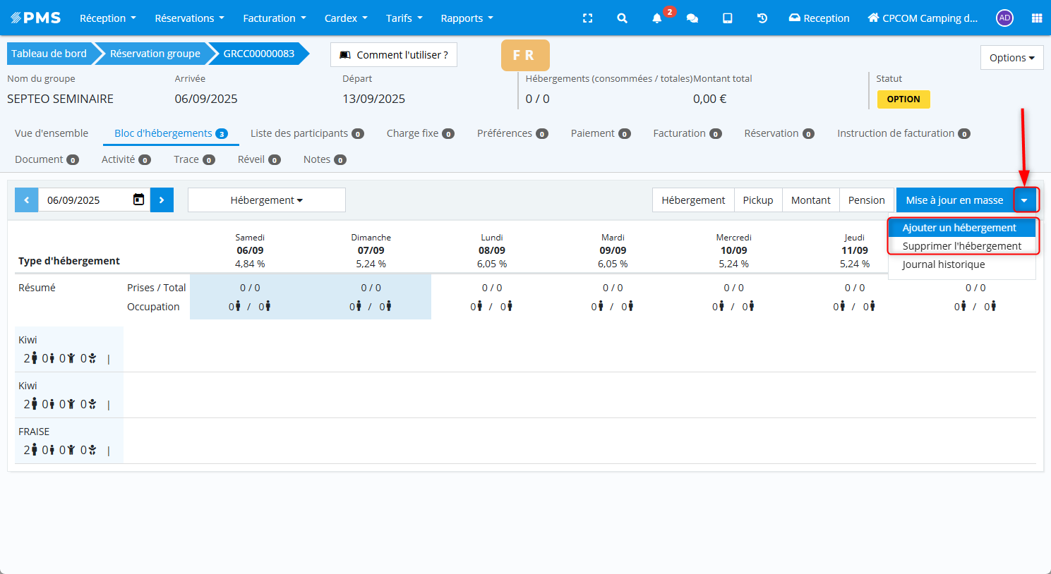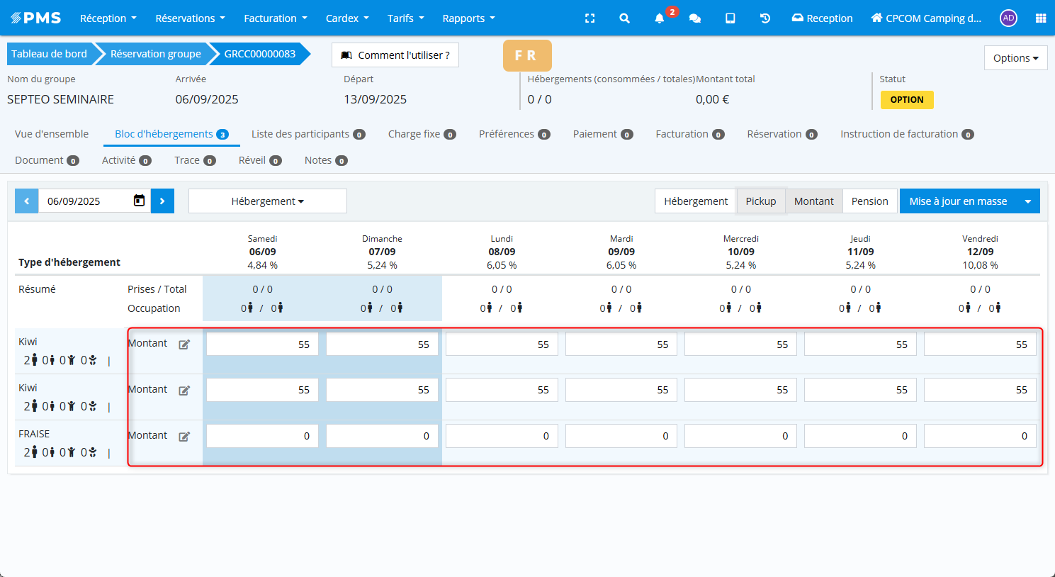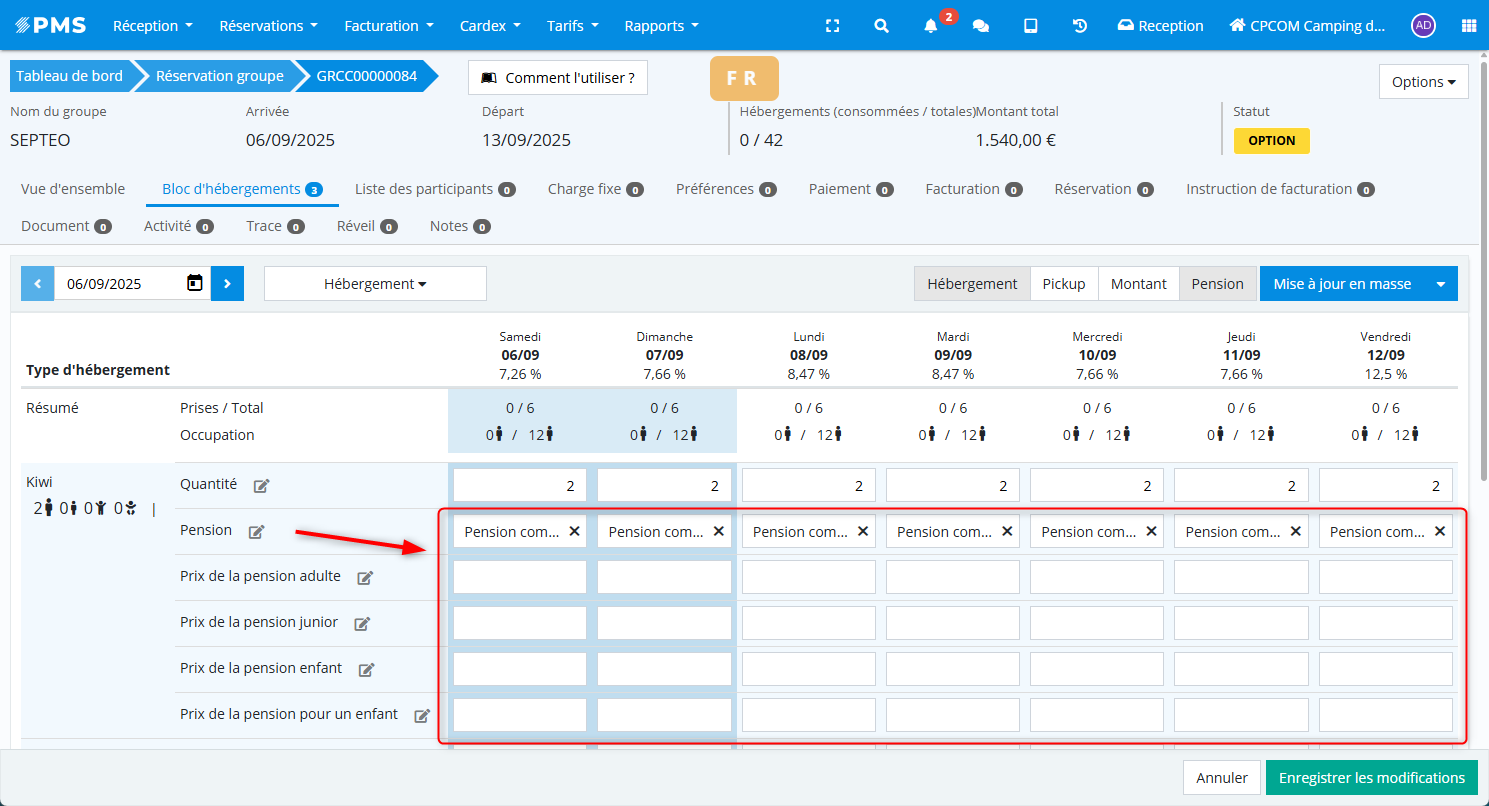 Cette option est utile lorsque le groupe bénéficie de pensions différentes selon les jours ou les hébergements.