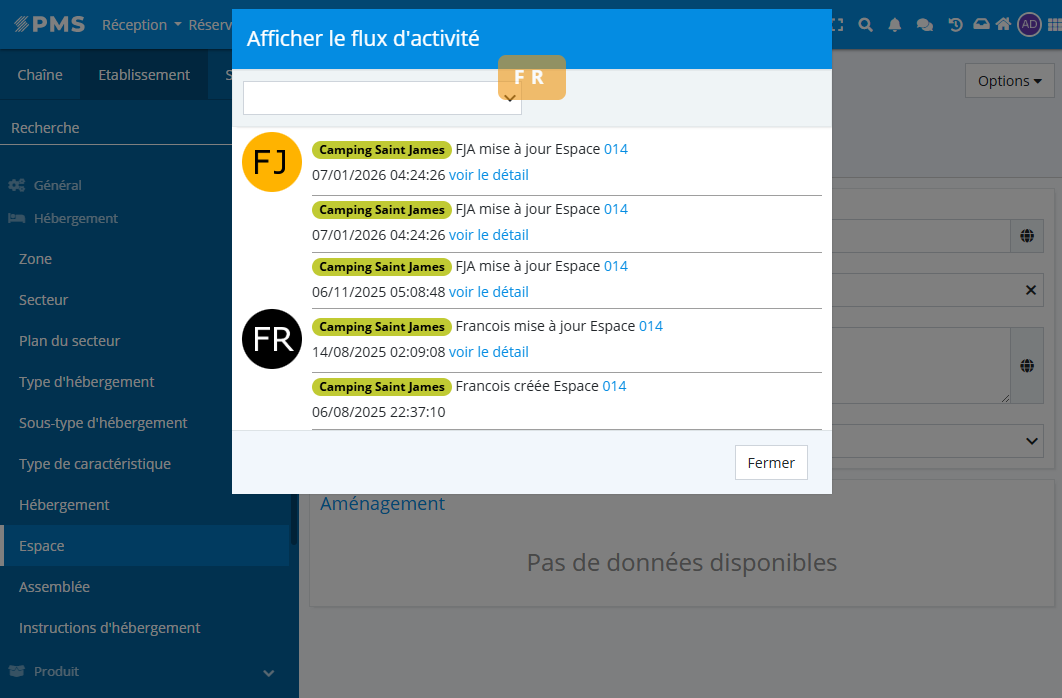 L’historique est accessible directement depuis la fiche de l’hébergement concerné.