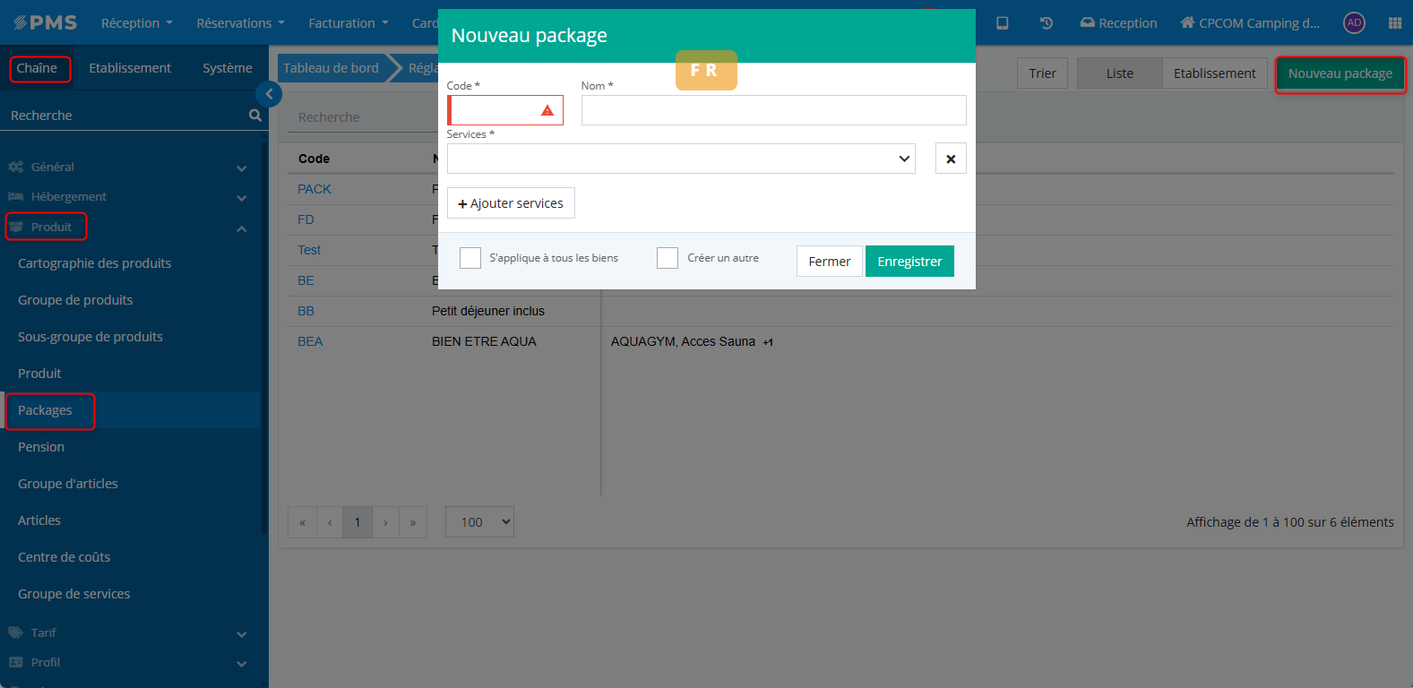 Configuration de la chaîne > Produits > Packages > Nouveau package