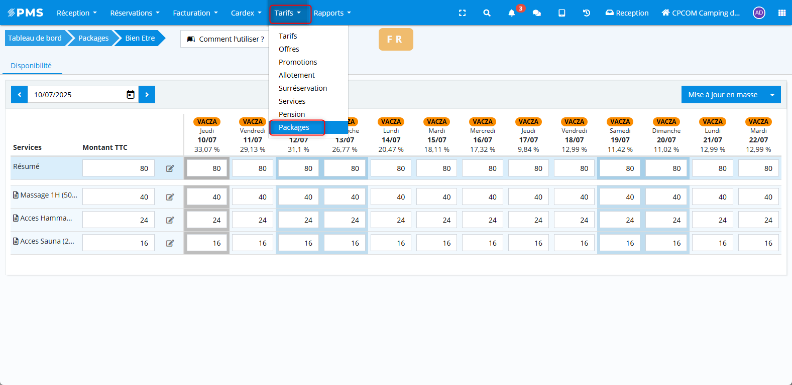 PMS > Tarifs > Packages