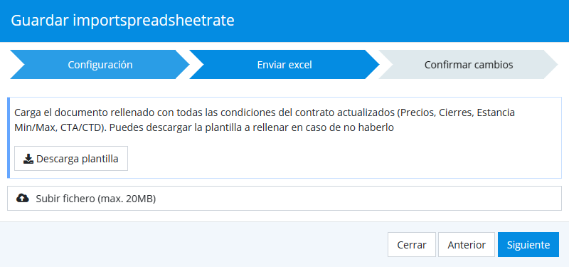 Si vous ne disposez pas encore de modèle, vous pourrez télécharger le modèle que Ulyses Suite fournit par défaut pour pouvoir le remplir via le bouton Télécharger le modèle. Le modèle télécharge les prix que vous avez saisis dans le tarif.