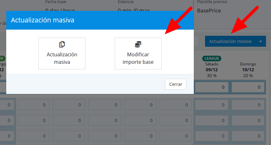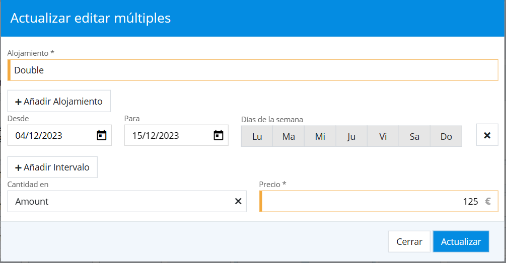 - Ensuite, depuis Mise à jour massive, nous cocherons l'option Modifier le montant de base comme suit