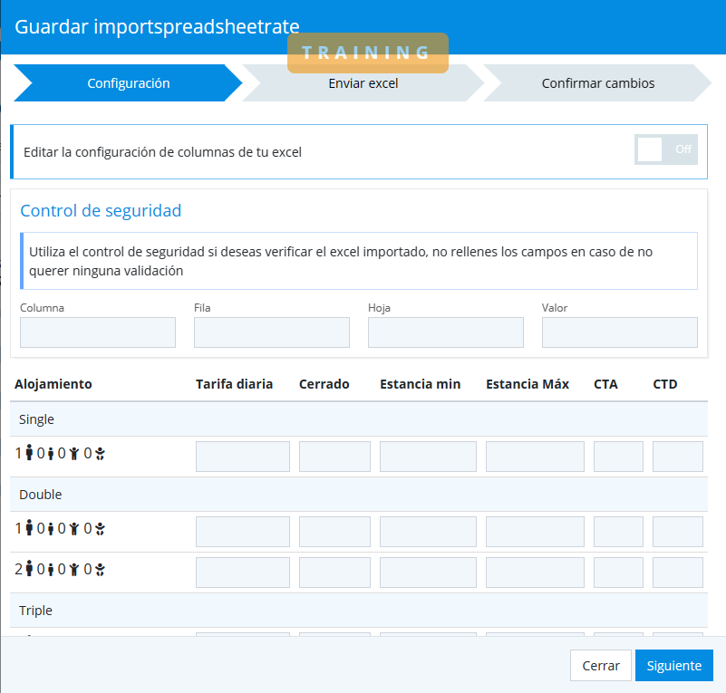 Étant donné que notre prix de base est celui de l'hébergement double, nous laisserons ses cases vides.