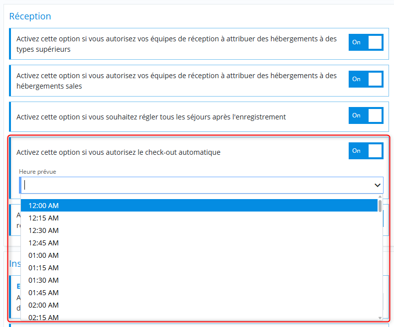 Une fois l’option activée, le système appliquera automatiquement le check-out aux séjours concernés.