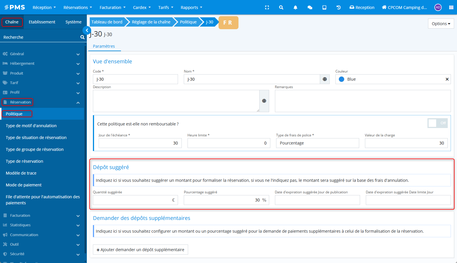 Chaîne > Réservation > Politiques d’annulation