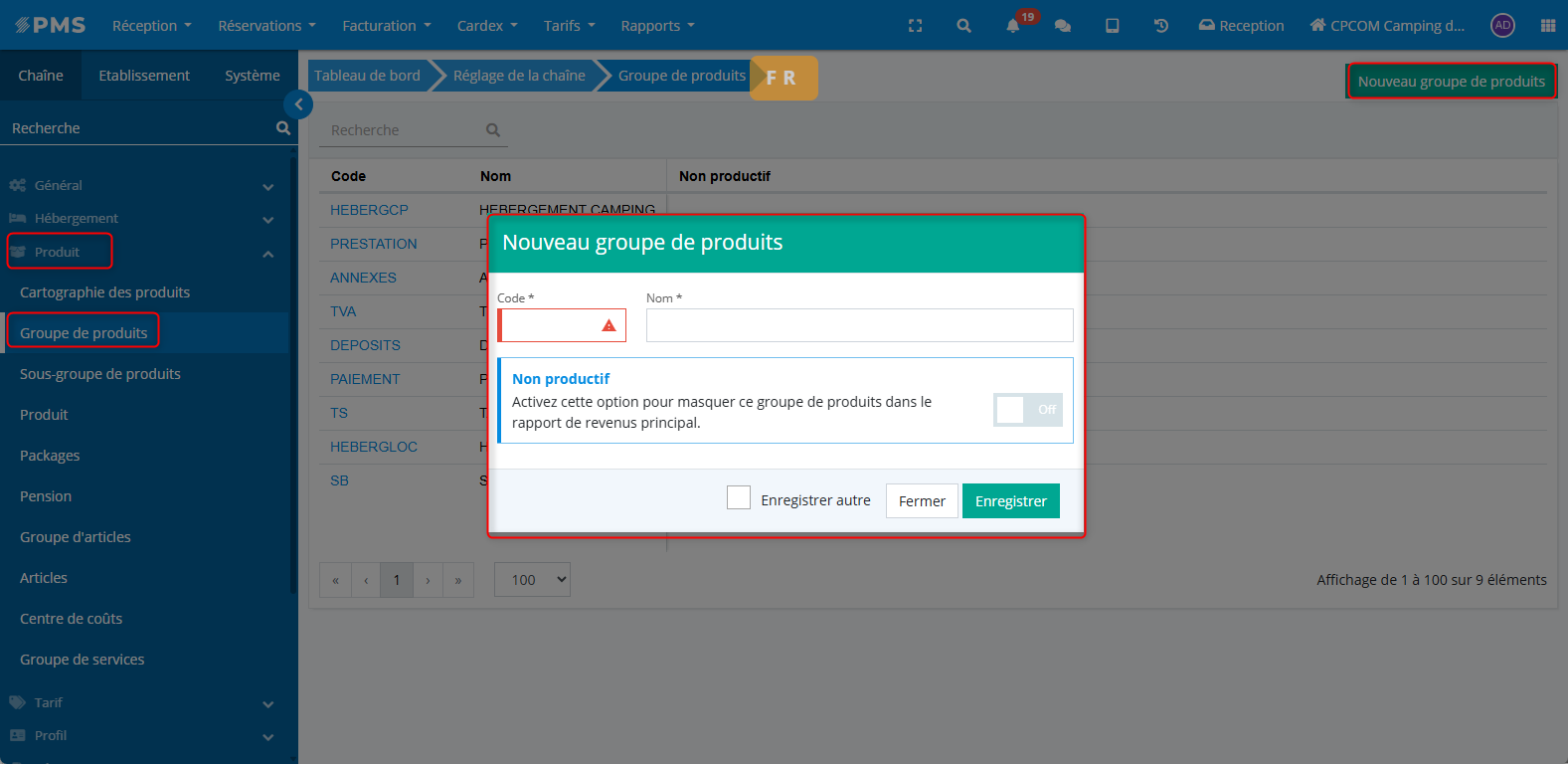 Configuration > Chaîne > Produits > Sélectionner le produit