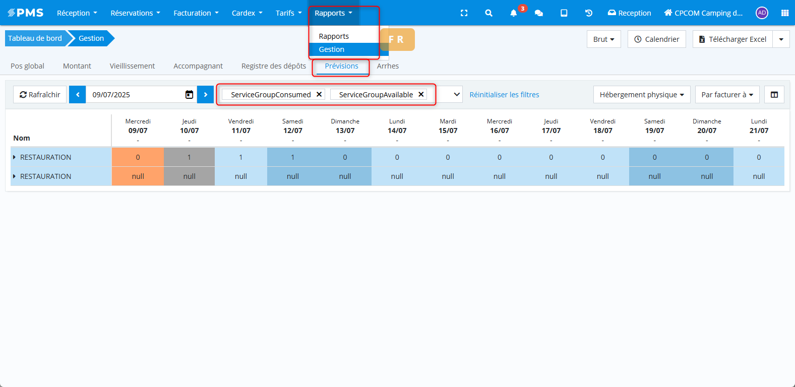 Une fois configuré, le groupe de services peut être utilisé dans les rapports suivants :